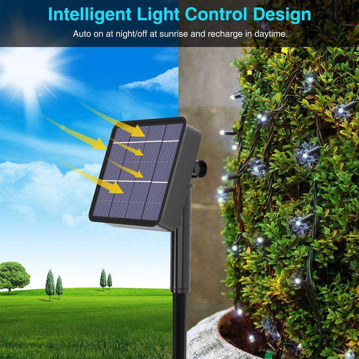 85808 Διακοσμητική Γιρλάντα 10 Μέτρων με Controller 8 Προγραμμάτων Φωτισμού - 100 LED 4W με Ενσωματωμένη Μπαταρία 600mAh - Φωτοβολταϊκό Πάνελ - Αισθητήρα Ημέρας-Νύχτας - Βάση Κήπου & Σκούρο Πράσινο Καλώδιο Αδιάβροχη IP65 Ψυχρό Λευκό 6000K Μ10m - ledmania.gr